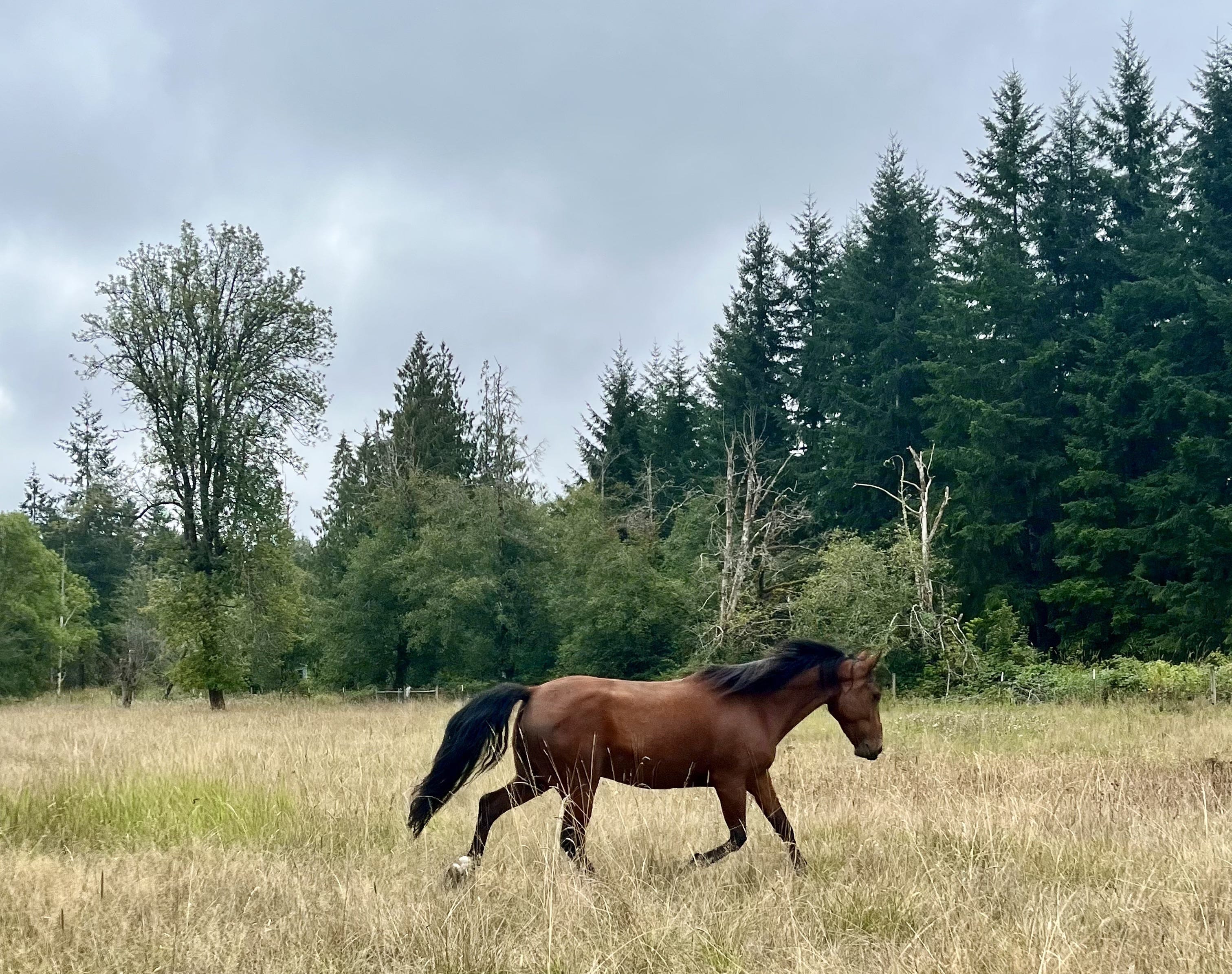 I accepted her offer and packed him up, drove him 225 miles south — driving a horse trailer through downtown Seattle is no small feat — arrived at the ranch 3.5 hours later, unloaded him, and let him lose.